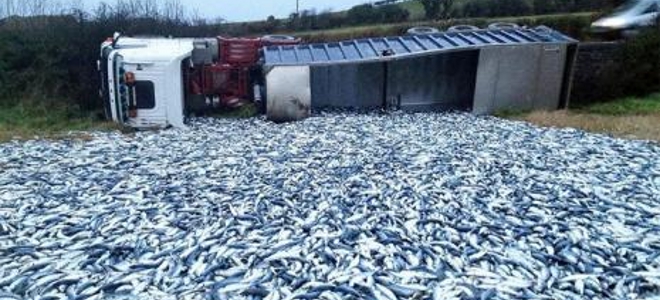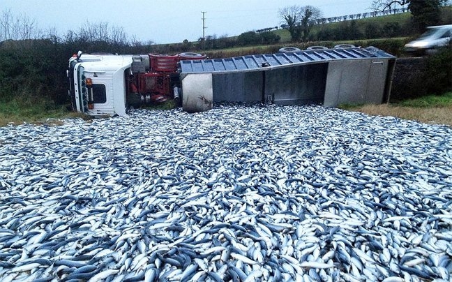 Ψάρια βλέπεις λέει στον ύπνο σου...λαχτάρα θα περάσεις! Μόνο που ένας 71χρονος αγρότης στη Βόρεια Ιρλανδία πέρασε απίστευτη λαχτάρα στον ξύπνιο του. Πήγε το πρωϊ στο αγρόκτημα του και νόμιζε ότι βρέθηκε... στη θάλασσα! Ο Γκόρντον Φλιν αντίκρισε 20 τόνους σκουμπρί να έχουν χυθεί στο γρασίδι του!Όλα ξεκίνησαν όταν η νταλίκα,που μετέφερε το εμπόρευμα προς το Άρντγκλας της Βόρειας Ιρλανδίας, αναποδογύρισε, με αποτέλεσμα τα ψάρια να πέσουν στην έκταση που ανήκει στον Φλιν.