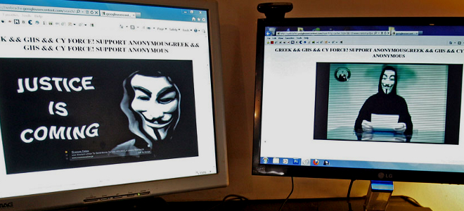 Συνελήφθησαν ένας 18χρονος χάκερ, καθώς και δύο άτομα ηλικίας 16 και 17 ετών, όλοι τους μαθητές Λυκείου, για την επίθεση στα υπολογιστικά συστήματα και το site του Υπουργείου Δικαιοσύνης. Την επίθεση είχε αναλάβει ομάδα νεαρών CRACKER, με το ψευδώνυμο Greek Hacking Scene ( G.H.S.), οι οποίοι στο μήνυμά τους δήλωναν ότι εκπροσωπούν τους ANONYMOYS.