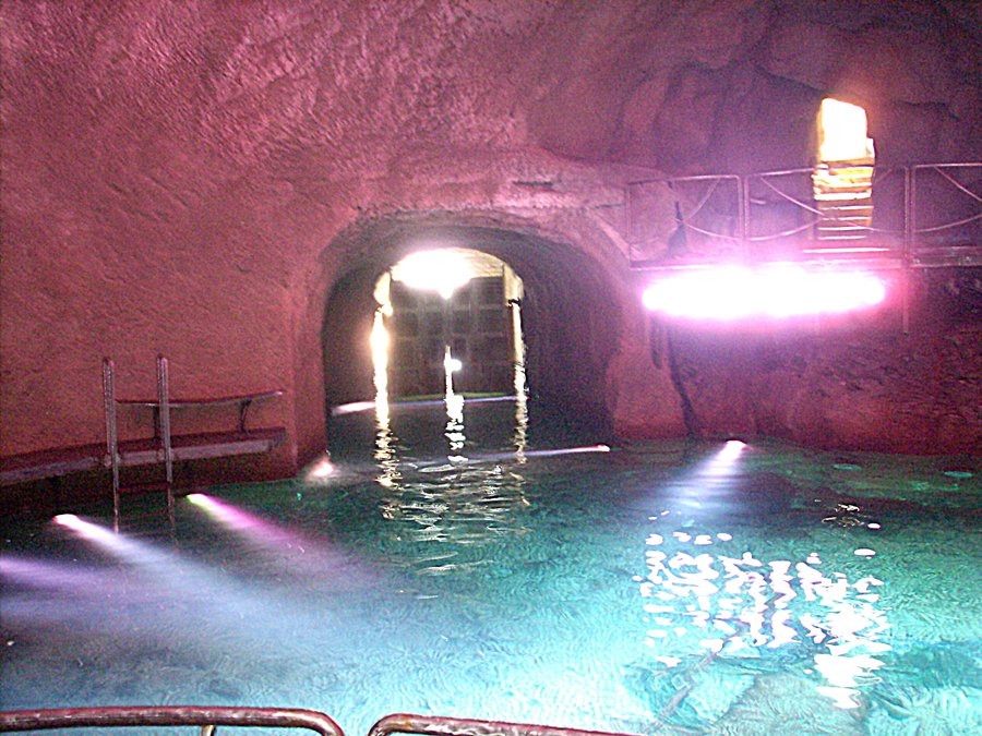 Κεντρικό στοιχείο της «σπηλιάς των οργίων» η τεράστια πισίνα, με το ψηφιδωτό στο πάτωμά της που απεικονίζει τον θεό της θάλασσας, Ποσειδώνα και η οποία, όπως λέγεται συνδέεται μέσω ενός τούνελ με τη θάλασσα.
